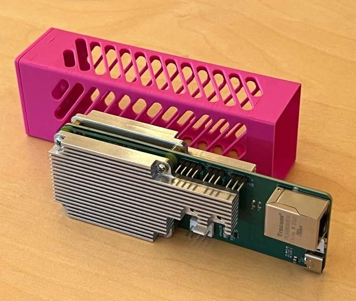 A 3D printed black plastic case to hold a single Xerxes Pi.